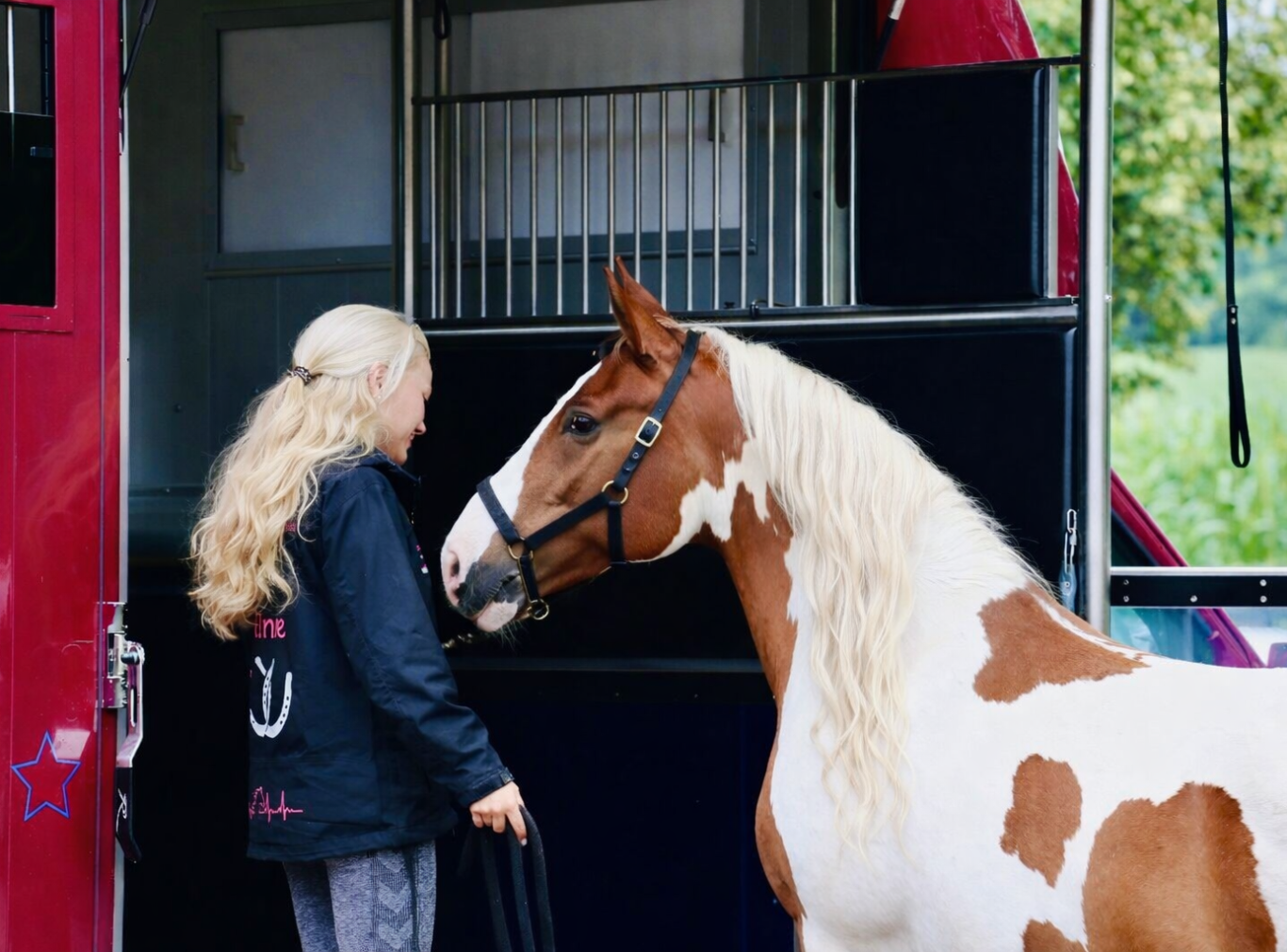 Unsere Trainingseinheiten finden mit unserem geräumigen Pferdetransporter statt. Das bietet mehrere Vorteile wie z.B. eine neue Ausgangssituation, mehr Platz, Frontausstieg, keine Stangen an Brust und Hinterhand, mehr Sicherheit für Mensch und Tier.